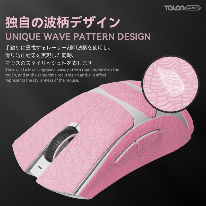 • [New pattern mouse grip tape] Based on TALONGAMES mouse grip tape, grip strength is greatly enhanced, providing high friction, flexibility and excellent grip comfort. At the same time as using a unique laser-engraved waves pattern on the surface, it is also blended with a unique color fading prevention technology to prevent fading. And from eight colors. You can choose freely according to your needs.