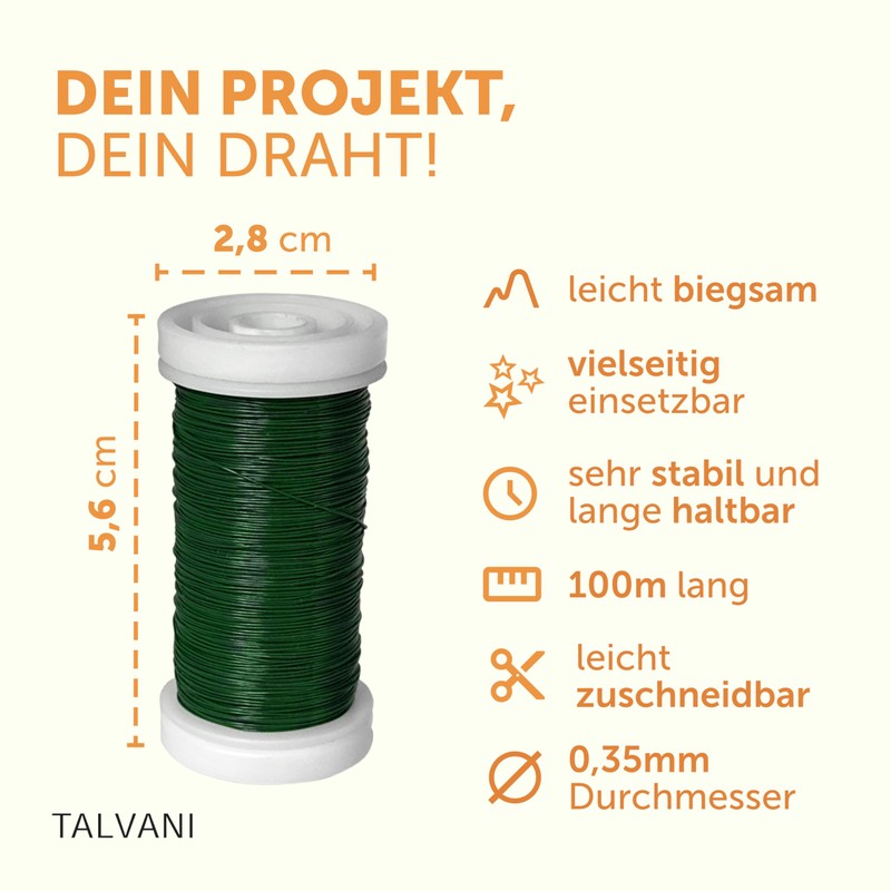 TALVANI Green Flower Wire, 100 m x 0.35 mm, Binding Wire for Garden, Floristry and DIY Projects, Stable and Flexible, Pack of 5, Myrth Wire