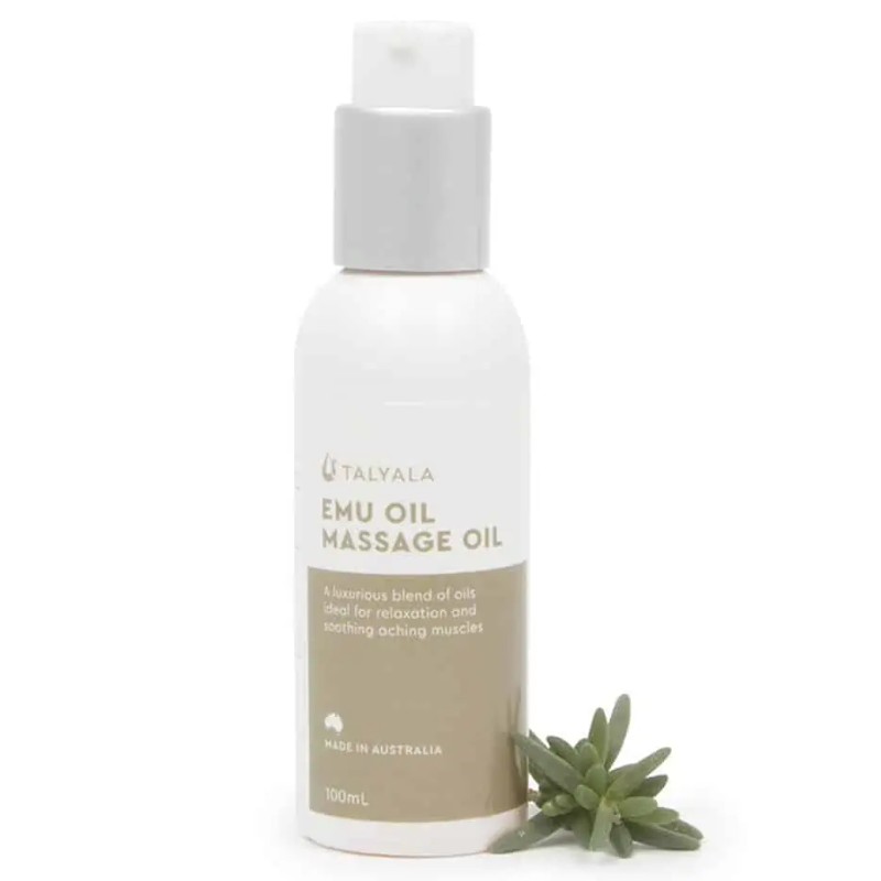 Talyala Massage Oil is a luxurious blend of Emu Oil, Almond Oil, Macadamia Oil, Wheatgerm Oil and high quality pure essential oils. This deeply penetrating emu oil massage oil is ideal for relaxation massage. It is also great for tired aching muscles or before and after playing sport.