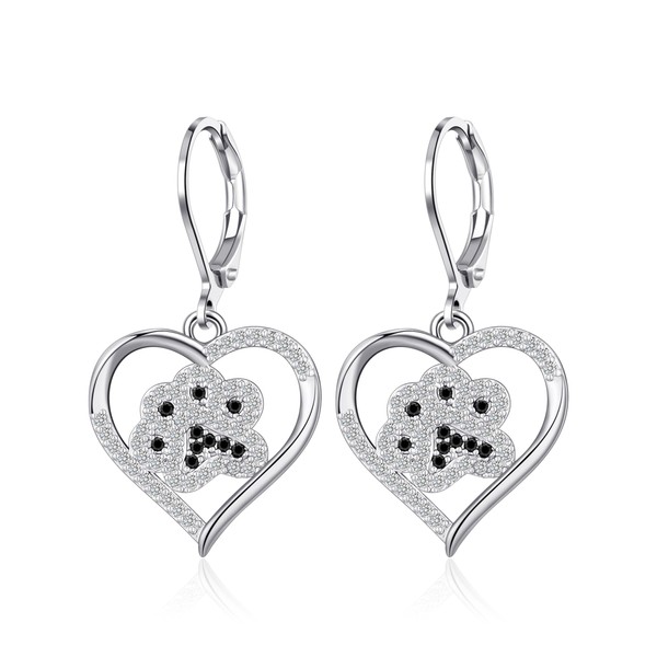 TALYKONG Paw Print Earrings for Women Dangle,Cat Dog Paw Earrings, Puppy Paw Dangle Leverback Earring for Women