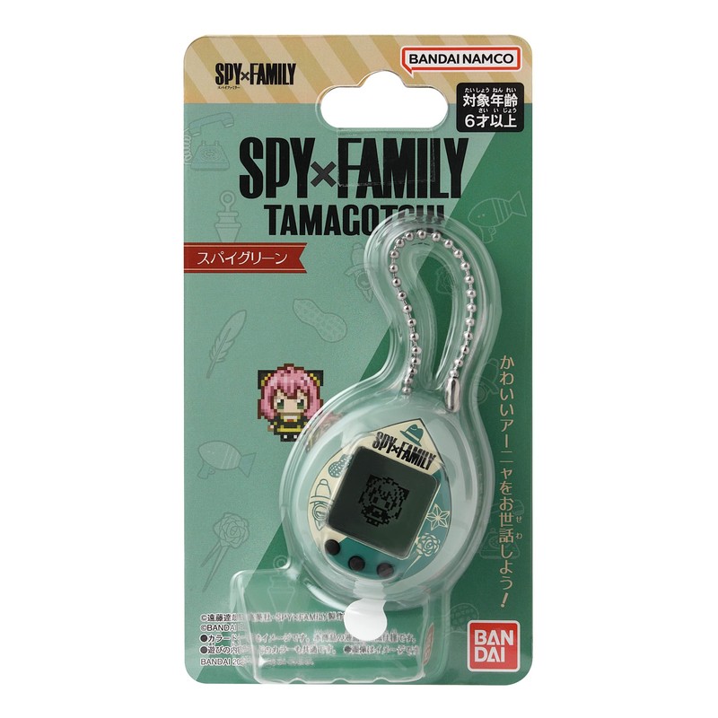 - GREEN TAMAGOTCHI SPY X FAMILY | Inspired by the hilarious Spy X Family anime and manga series, this Tamagotchi Nano lets you nurture the adorable Anya just like the Tamagotchi Original. This model has a green shell with items from the show pictured around the screen.