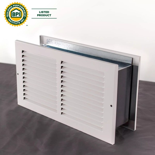 The unique design prevents air from escaping into wall cavities. The Return Air Pathway is made in the USA and BPI listed. The retrofit two-piece metal frame is expandable for easy installation. All units include baffle material to mitigate noise and light transmission.