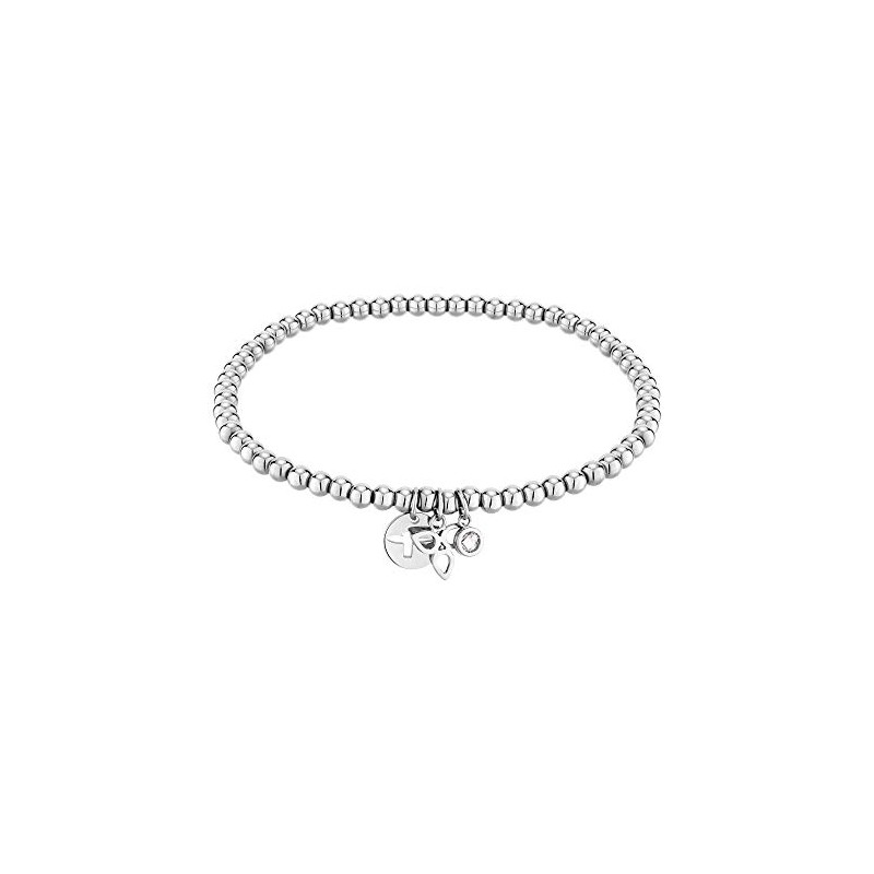 - Material: polished stainless steel beads with cubic zirconia stones; length: 17 cm; strap: drawstring