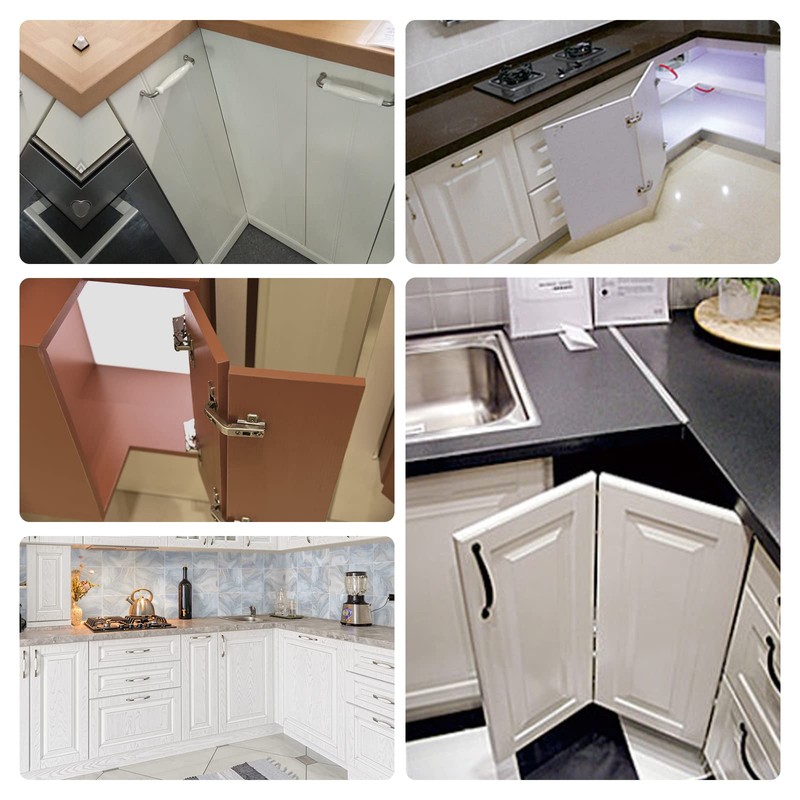- ☑️Premium Material - The kitchen cabinet hinges are made of high quality cold rolled steel, features high hardness and strong corrosion resistance, enduring enough for long time use. With wider 165 Degree opening angle, the corner cabinet hinges can be placed in an internal drawer without obstacles