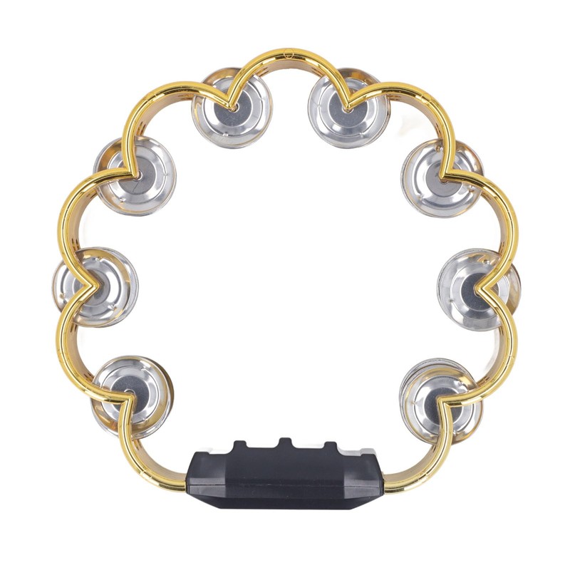 Tambourine Double Row Floral Design Percussion Jingles Hand Instrument Party Performance (Gold)