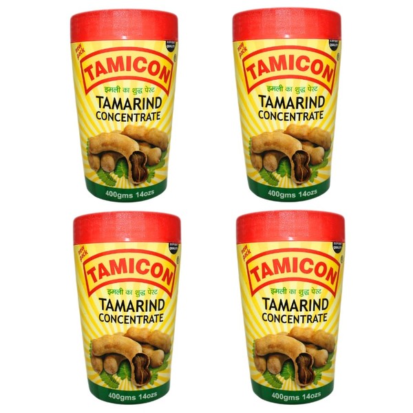 Tamicon Tamarind Concentrate | Tangy & Sour Imli Chutney | South Indian Style Paste | Ideal for Indian Curries, Thai Sauces & Kitchen Recipes | 14 Oz (Pack of 4)