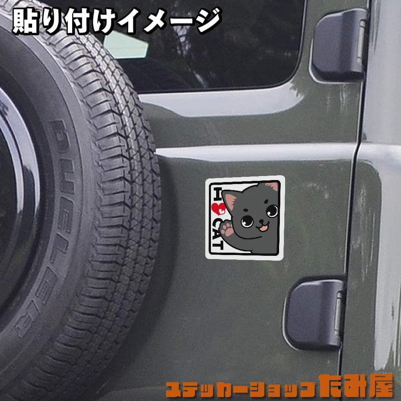 Tamiya I Love Cat Sticker I Love Cat Square 3.3 inches (8.5 cm) Weatherproof Waterproof Japanese Sticker, Black Cat (Sticker)