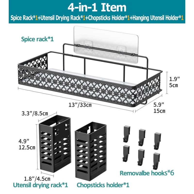 - ✔【Perfect 4 in 1 Item】: We focus on researching and developing super cost-effective storage products, which perfectly integrate the spice rack, utensil Drying Rack, chopsticks holder, and wall utensil rack .Perfectly suitable for narrow apartment kitchens.