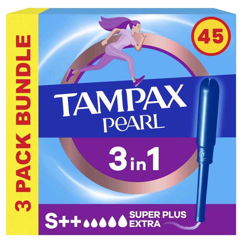 Tampax Pearl Super Plus Extra Tampons with Applicator 3 x 15, 3in1 Leak Protection, Comfort and Easy Insertion