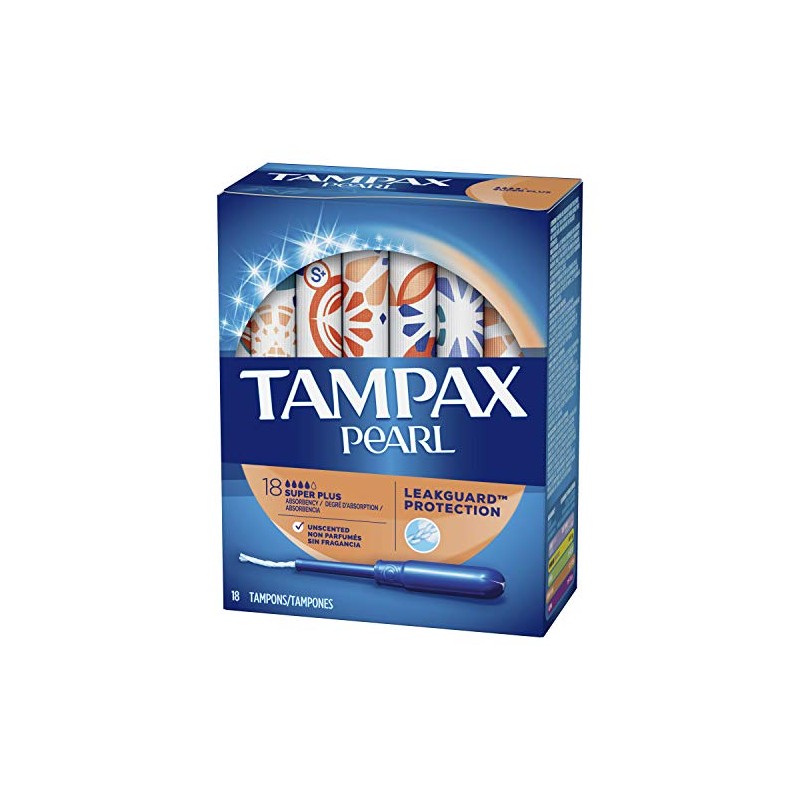 Tampax Pearl Tampons Super Plus Absorbency with LeakGuard Braid, Unscented, 18 Count