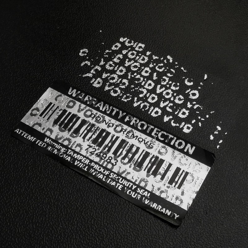 - Attempted Removal Damages Label Surface Leaving VOID Pattern
