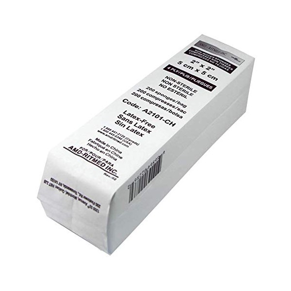 - Paquet de 200 compresses non-tissées tout usage, non-stériles, 4 plis, sans latex, 2 x 2 pouces. Idéal pour la pose d'ongles, les soins de beauté ou médicaux.