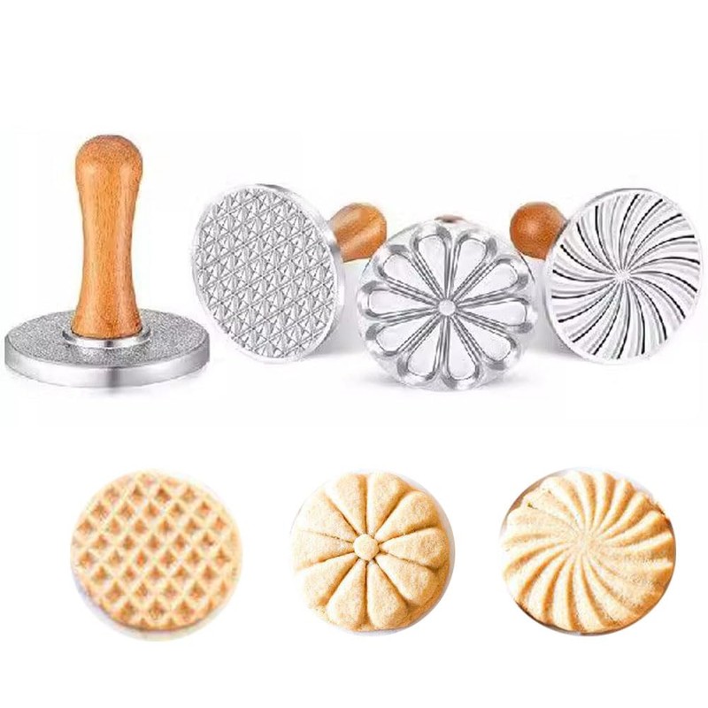 - Heavy Cast Metal for Durable Use. The stamp is made from zinc alloy for durable use and plus with a wooden handle for a more comfortable stamping experience. Each stamp is designed to make 3-inch round cookies.