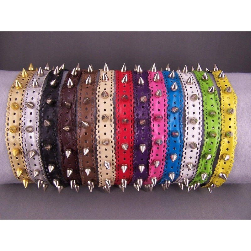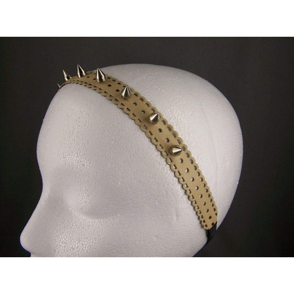 Tan Beige faux leather rivet spike stud headband stretch elastic spiked studded