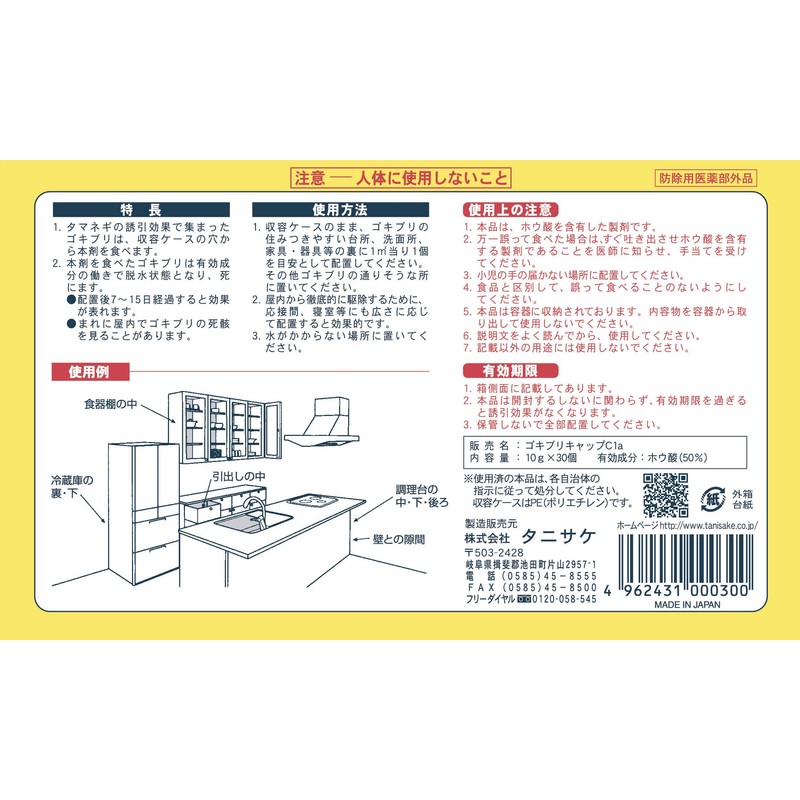 - All ingredients: boric acid, flour, sugar, powdered onions, powdered oil, talc
