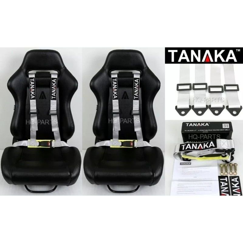 TANAKA 2 X TANAKA UNIVERSAL SILVER 4 POINT BUCKLE RACING SEAT BELT HARNESS