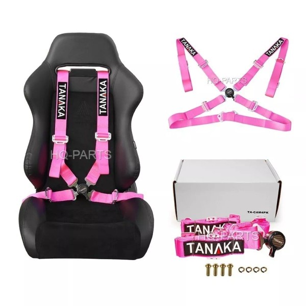 TANAKA Universal Pink 4 Point Cam-Lock Quick Release Racing Seat-Belt Full refund + Free return if not satisfied in 60 days |
