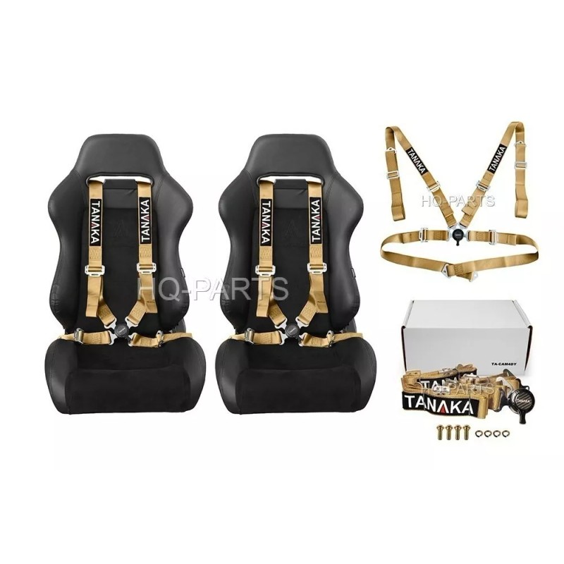 TANAKA Universal Khaki 4 Point Cam-Lock Quick Release Racing Seat-Belt Full refund + Free return if not satisfied in 60 days |