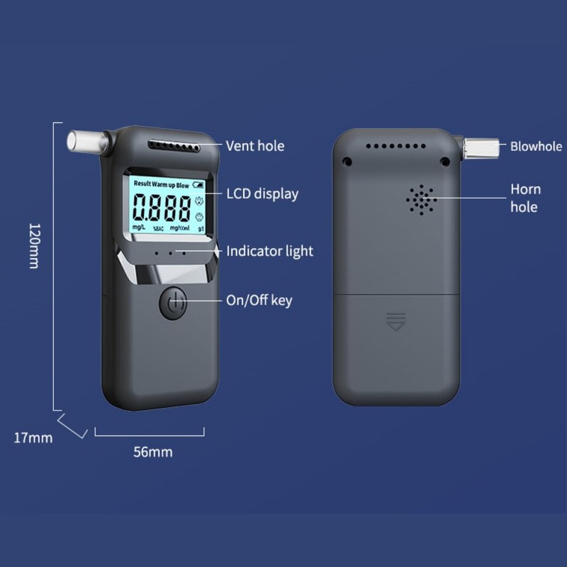 - 【Easy to Use】: To use the breathalyzer, Press the power button for 2 seconds to turn it on. Wait 15 seconds for warm-up, then continue to blow for 5 seconds to obtain results. Results will be displayed on the LCD screen of the breathalyzer tester for 15 seconds.
