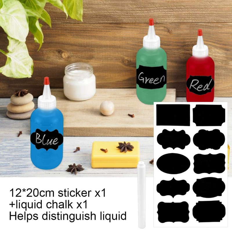 - ☿【Squirt Bottles Set】:The package contains 12 seasoning bottles (120ml/4oz), 1 pcs 12*20cm sticker, 6 separate red caps, 1 liquid chalk, 1 funnel (random color) and 1 cleaning brush. The value package is enough to meet your different needs.