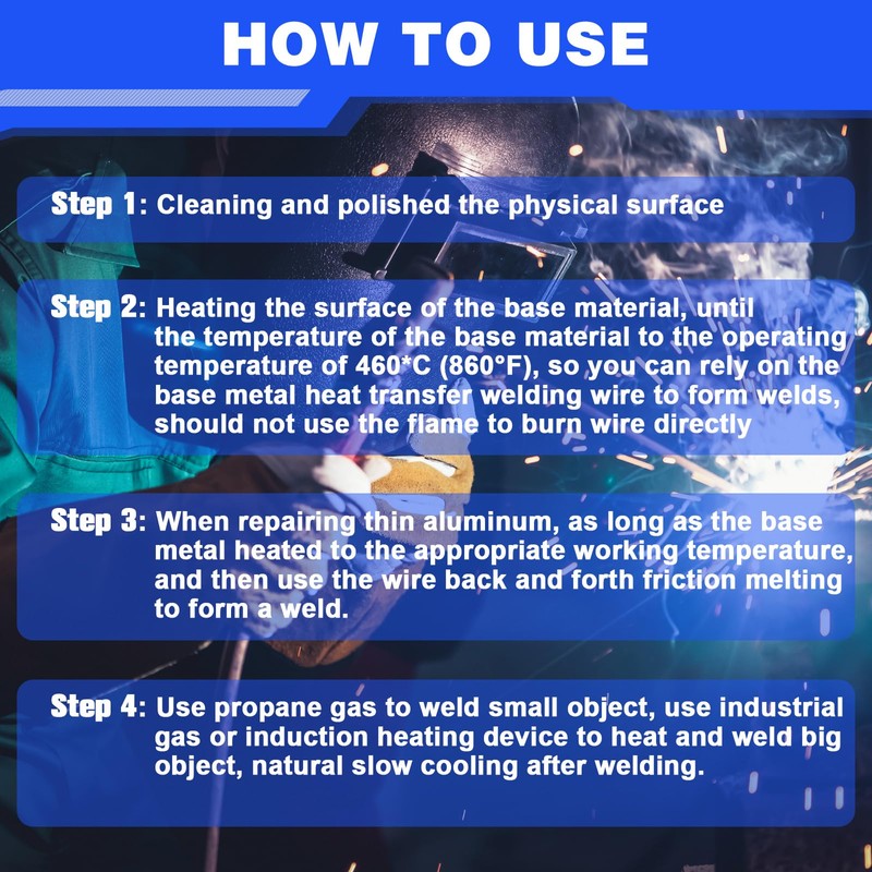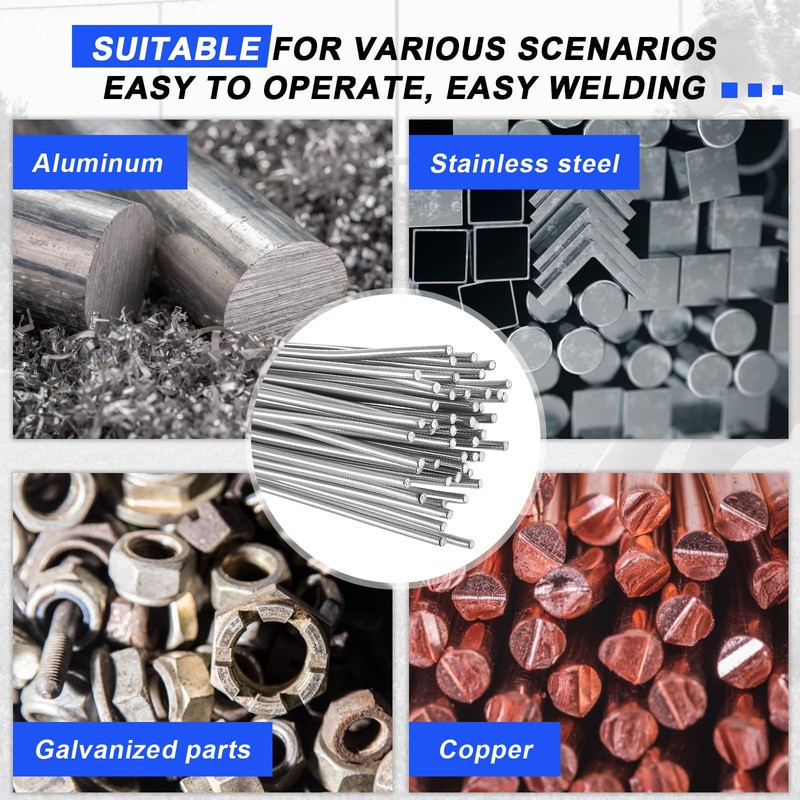 - Wide Range of Applications: ideal for electronic circuits, components, and various metallic materials such as stainless steel, iron, copper, aluminum, and PVC pipes, these welding rods ensure broad usability; Whether you're repairing water tanks, oil tanks, or working on a different metal project, our aluminum stick welding rods have got you covered