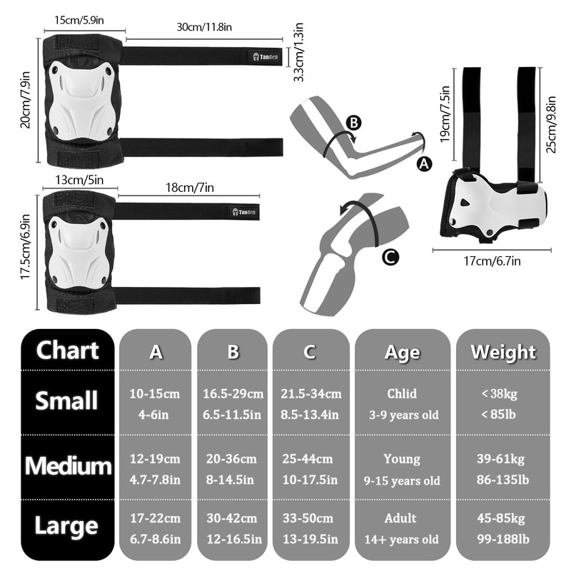 Tanden Skating Protective Gear Adult Youth Knee Pads and Elbow Pads Set, Skateboard Wrist Guards for Roller Skating Skateboarding Cycling White
