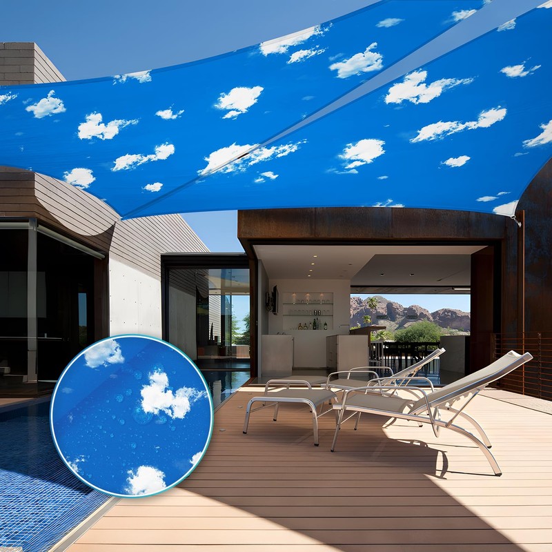 - WATERPROOF: Fabric has been treated with waterproof coating, good for rain and sun blocking at the same time, need to tilt the shade sail in a low-high position to prevent polling water during installation.