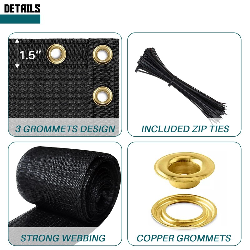 - 【SUPERIOR QUALITY MATERIAL】: Knitted with 100% High-quality Pure Polyethylene material for block maximum U-V, protect your outdoor furniture, tear-resistant, air permeable; Unique patented appearance of each corner has 3 grommets for extra reinforcement, keeps the fence in place even in extreme weather and no maintenance.