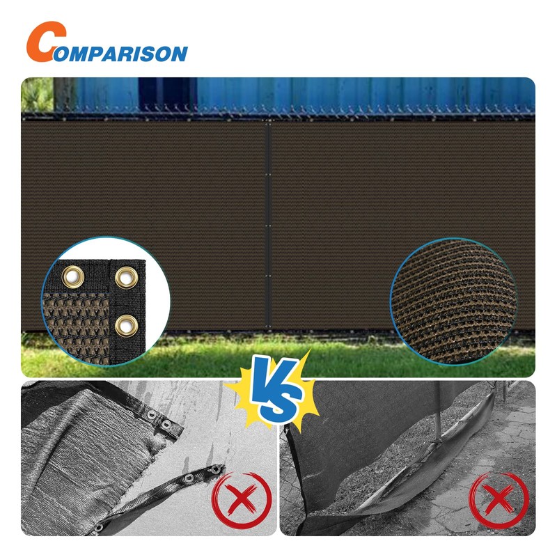 - 【EASY TO INSTALL】: After unfolding the privacy screen use zip ties to fasten the grommets to the fence on each side, no professionals and tools are needed to complete the installation. (Zipties included in the package)
