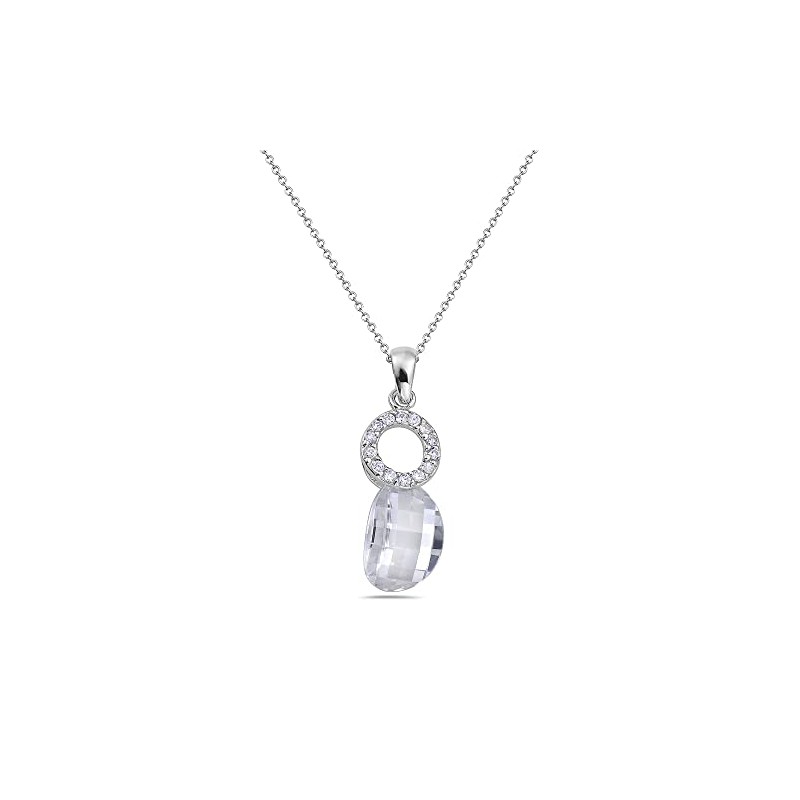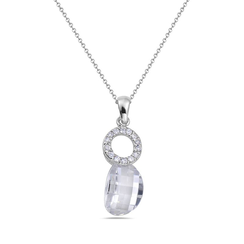 Tang & Song Nickel Free Brass Clear CZ Circle with Barrel Cut Clear CZ Drop Pendant with 16+2" Rolo Chain
