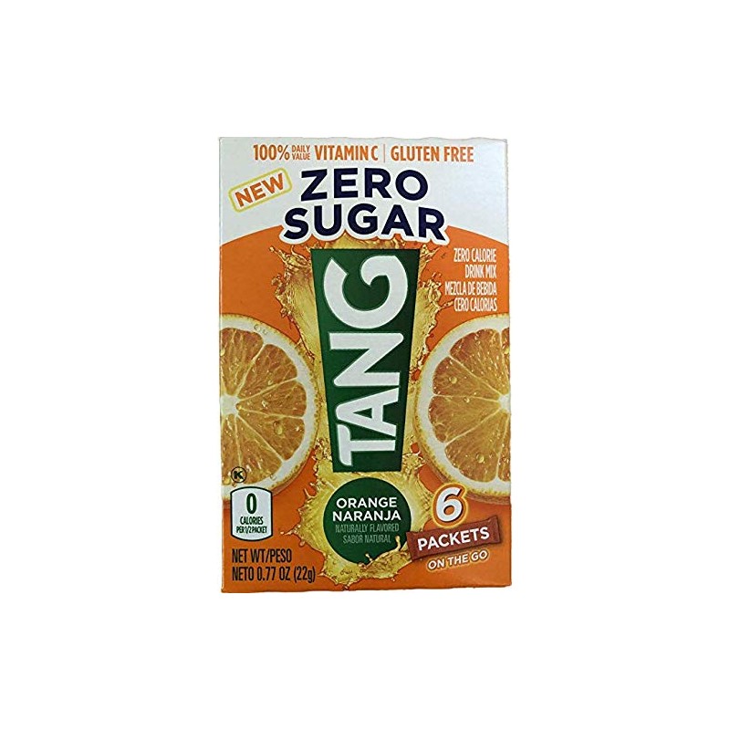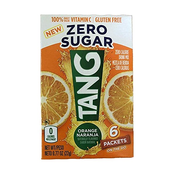Tang ZERO SUGAR, sugar free drink mix, 6 packets, original Orange flavor, zero calorie