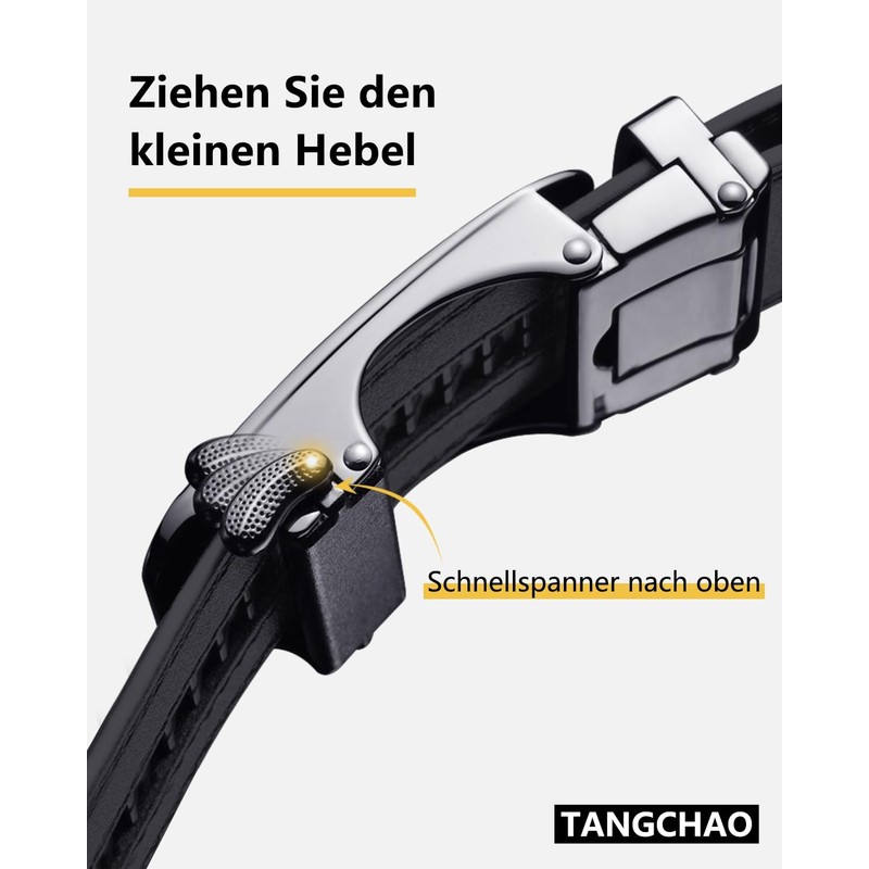TANGCHAO Belt Mens Ratchet Automatic Belt Leather Belt Mens Business Suit Belt 35mm Wide Black 115-145CM