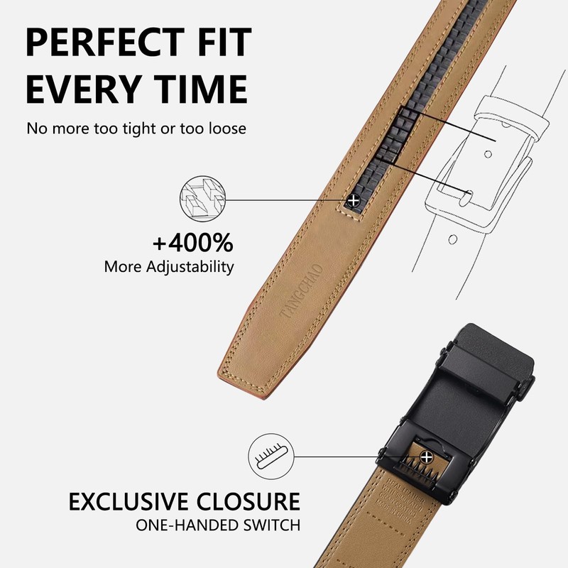 TANGCHAO Belt Mens Ratchet Automatic Belt Leather Belt Mens Business Suit Belt 35mm Wide Black 115-145CM