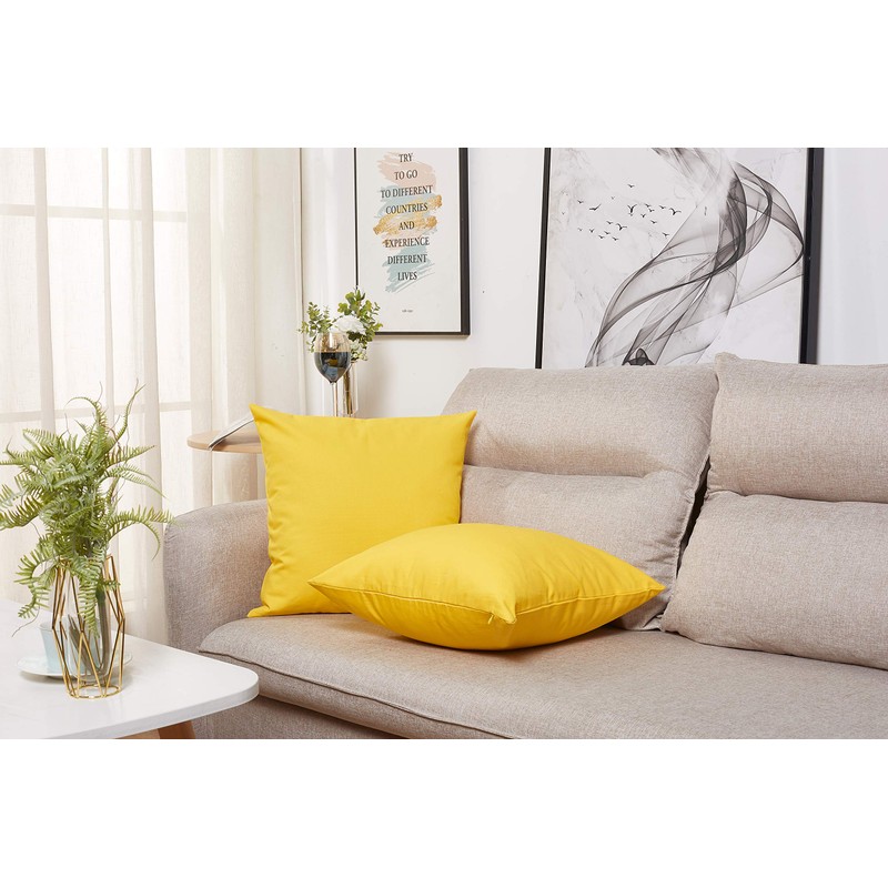TangDepot Handmade Decorative Solid 100% Cotton Canvas Throw Pillow Covers/Pillow Shams, (14"x14", Yellow)