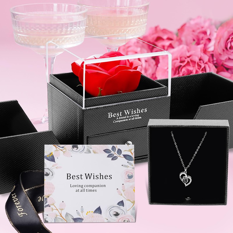 - 【What You Get】The preserved rose necklace set includes a necklace with 100 languages I LOVE YOU,a gift box of rose,and a greeting card (You can fill in by yourself ).