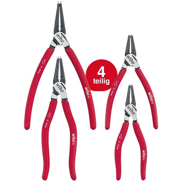 - VERSATILE: the set contains 4 circlip pliers, including pliers for inner rings (holes) and outer rings (shafts) with straight shape