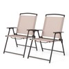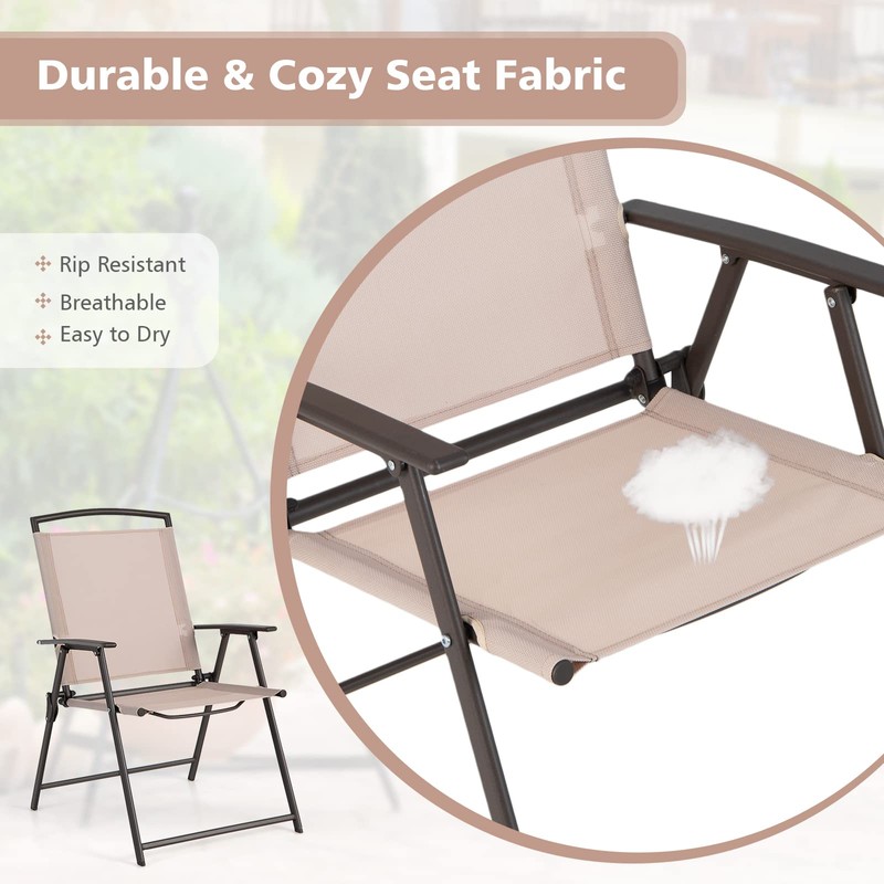Tangkula 2 Piece Patio Folding Chairs, Outdoor Dining Chairs w/Breathable Fabric, Heavy Duty Steel Frame, Folding Chairs for Garden, Backyard, Poolside, No Assembly Needed (1, Beige)