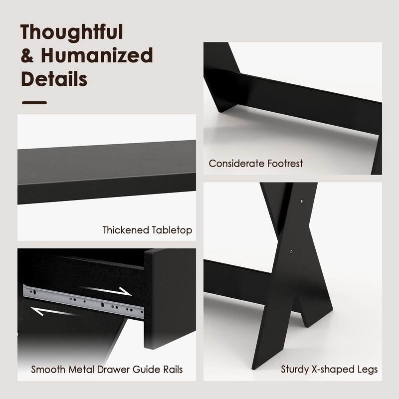 - Selected Materials & Sturdy Structure: Made of high quality materials, the writing desk is built to last. What’s more, the thickened boards contribute to a sturdy performance during use. The sturdy X-shaped legs support the office study table, adding to stability.