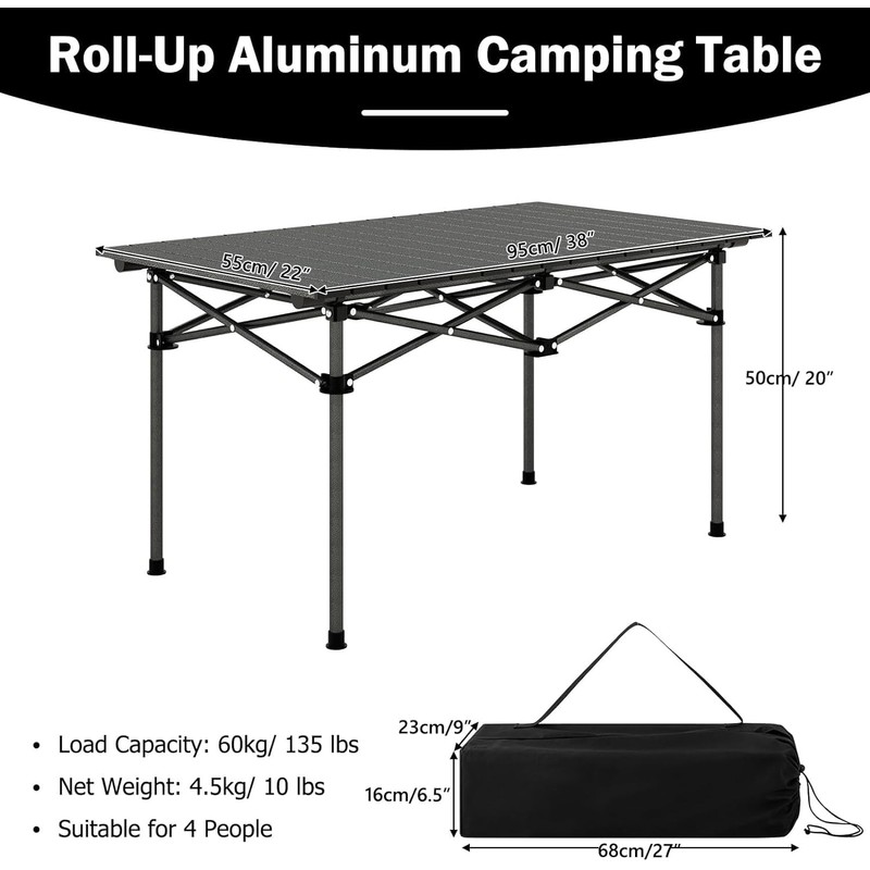 Tangkula Aluminum Folding Camping Table, Lightweight Roll-up Camp Table for 4-6 People with Large Tabletop & Carry Bag, Portable Picnic Table for Outdoor Camping, Travel, BBQ, Party