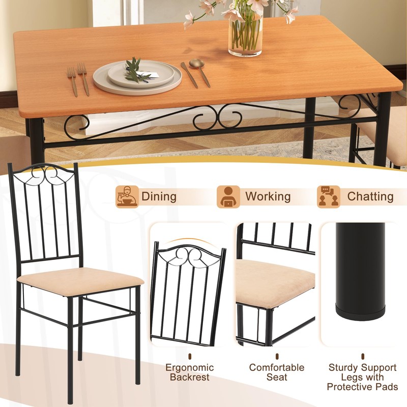 - 【5 Pcs Dining Furniture Set】The 5-piece dining set comprises of 1 rectangular dining table and 4 high-back chairs, making it the perfect solution for a family dining experience. Additionally, this versatile dining table set can also be utilized in a variety of settings.