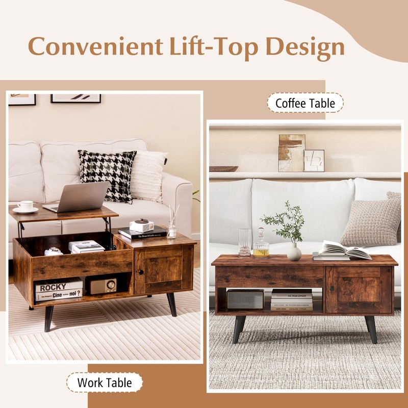 Tangkula Lift Top Coffee Table with Storage, Living Room Table with Hidden Compartment, Cabinet & Open Shelf, Flip Top Center Table, Pull up Coffee Table for Home, Office (Rustic Brown)