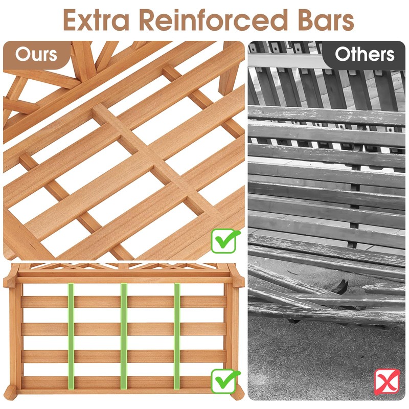 - Upgraded Sturdiness: Supported by 4 solid wood legs, the loveseat chair bears a strong weight of 800 lbs and ensures superior stability. Moreover, the patio wood bench is also designed with extra reinforced bars for higher sturdiness.
