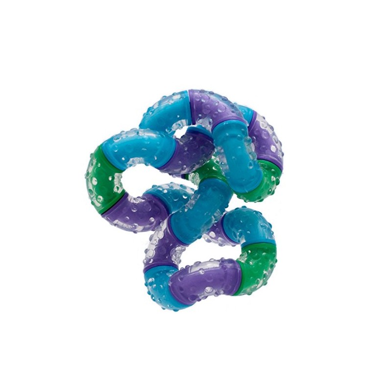 - The Tangle consists of 20 inter-connected, 90-degree curved pieces that pivot 180 degrees at each joint. Covered in a soft tactile rubberized material, it features a bumpy texture that will provide added stimulation.