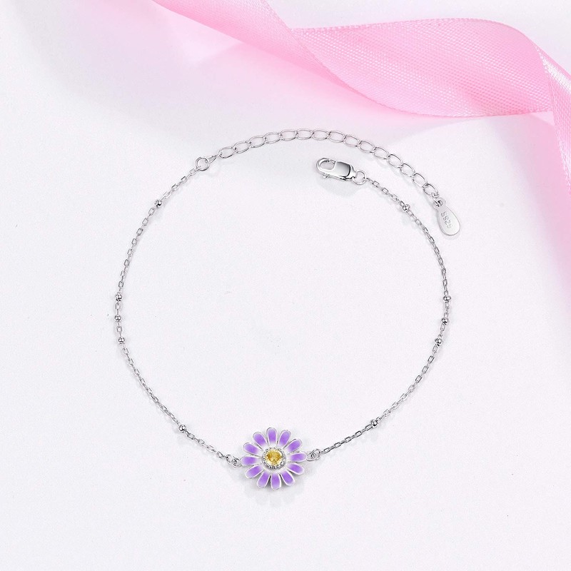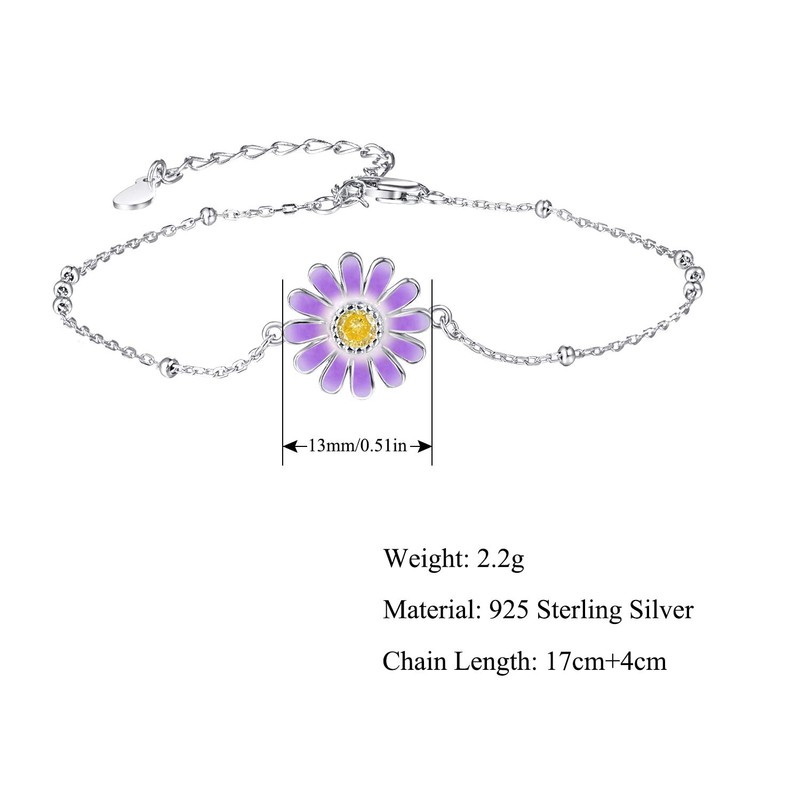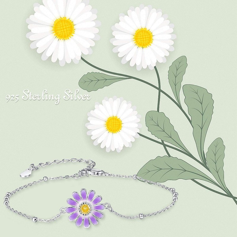 - Bracelet for Women Sterling Silver-Exquisite purple daisy flowers attach to the chain symbolize deep love.