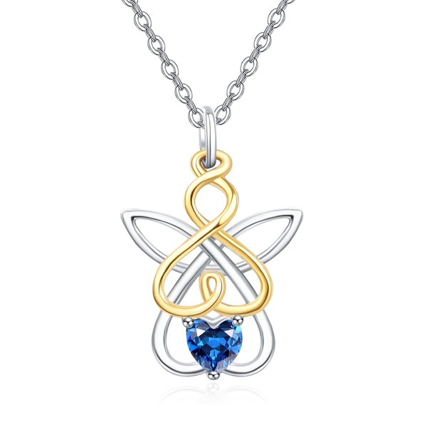 TANGPOET Guardian Angel Necklace for Women 925 Sterling Silver Infinity Love Heart Necklace Created Sapphire Gemstone Jewelry for Her