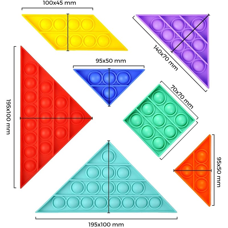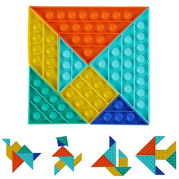 - [2-IN-1 Tangram Puzzle and Pop Bubble Games] Looking for something special to increase interactive with your kids and create a happy and warm home atmosphere? Look no further. Our 2- IN- 1 TANGRAM PUZZLE AND POP BUBBLE GAME works with your hands and head, while at the same time you can rearrange 7 independent parts in a variety of full images. Besides, they can expand their knowledge and improve their imagination