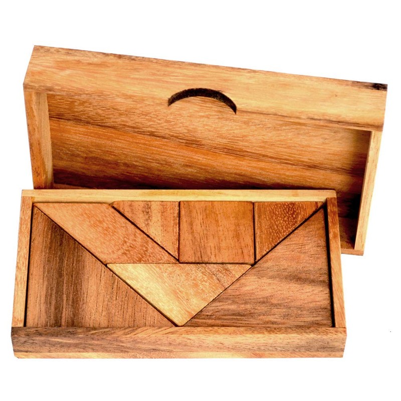Tangram Rectangle, Large Chinese Wooden Puzzle with 7 Pieces, Tangram Puzzle, 1250 Figures Puzzle Together with Tangram Templates, Laying Puzzle, Children's Puzzle, Family Puzzle, School