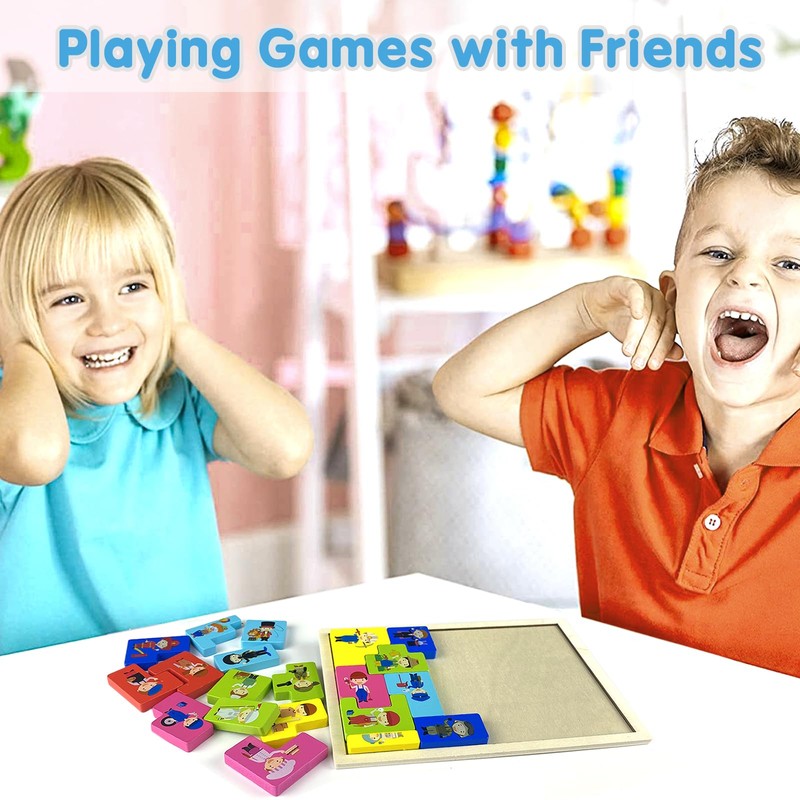 - Person wooden puzzle: The puzzle tetris game is designed with a unique theme by professional characters. Each puzzle has different shapes and drawing patterns that allow children to let their imagination run wild. Tangram allows children to recognise, organise and combine different colours, shapes and figures. Encourages the development of children's practical and cognitive skills.