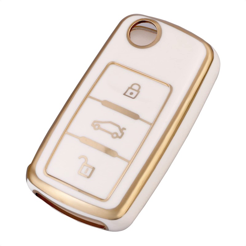 TANGSEN Key Fob Cover Soft TPU Full Protection Key case Compatible with Beetle CC EOS Jetta Golf GTI Jetta Passat Phaeton R32 Rabbit TIGUAN Touareg 3 Button Remote Control Key Protector (White)