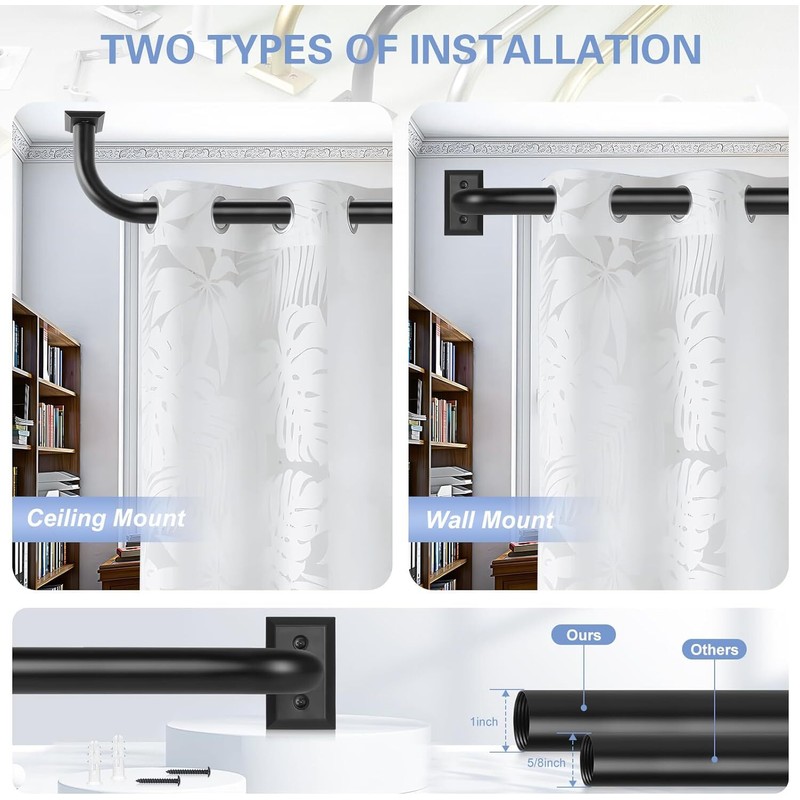 TANGWIN Wrap Around Curtain Rods,Black Curtain Rods for windows 72 to 144 Inch(6-12Ft...